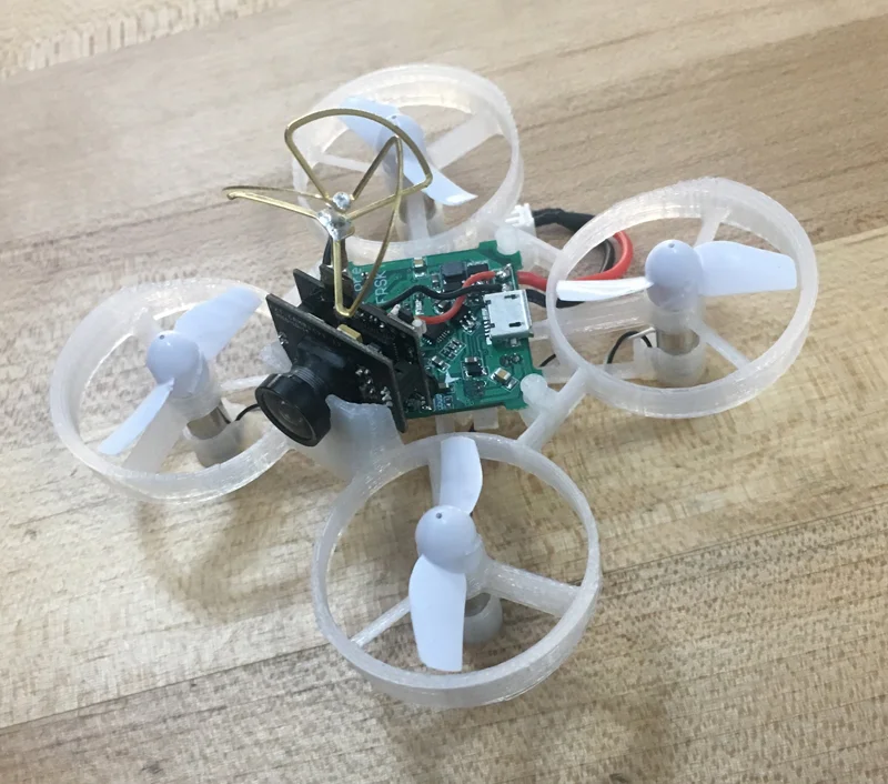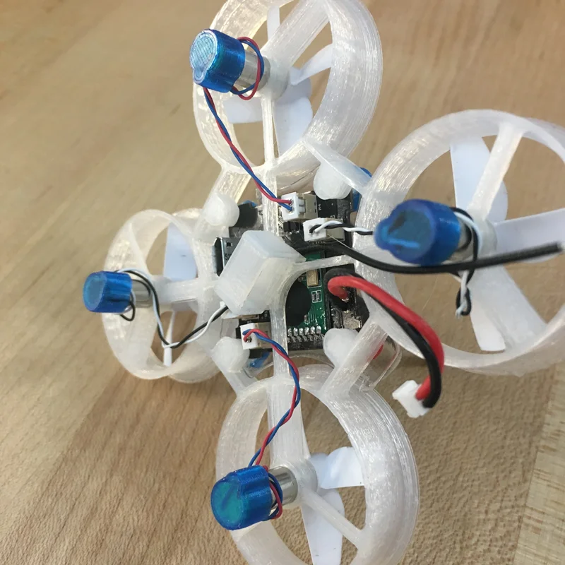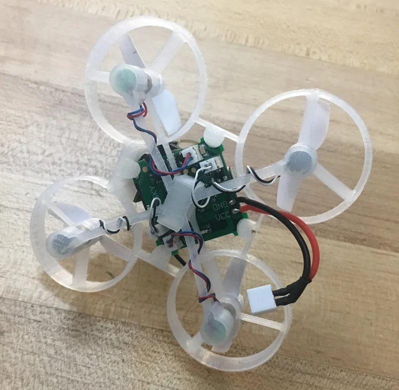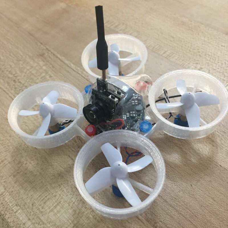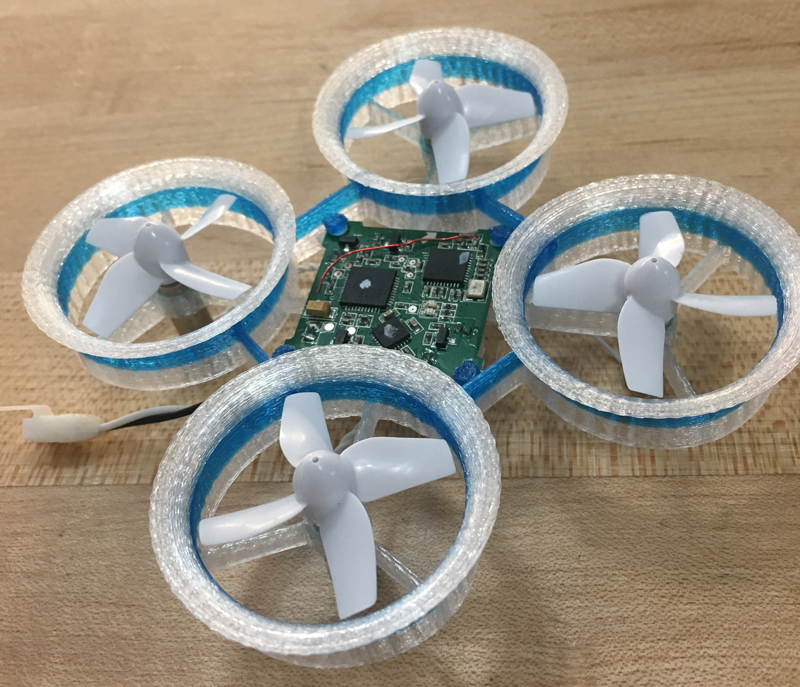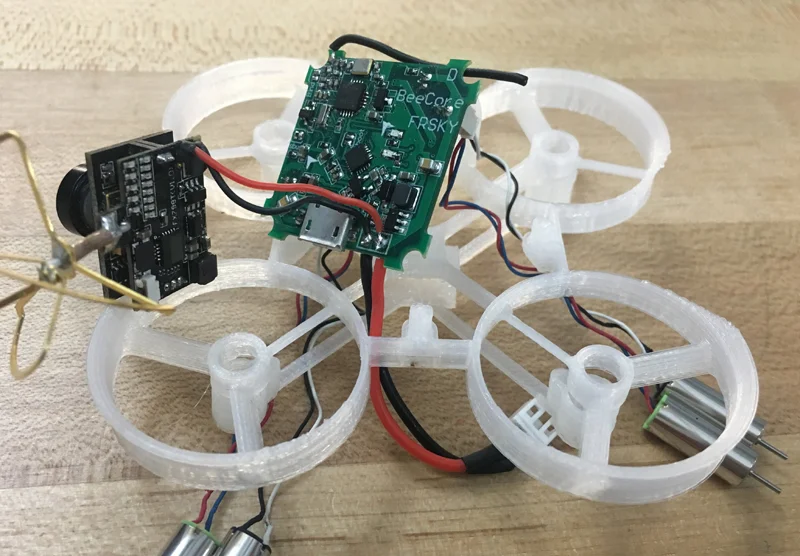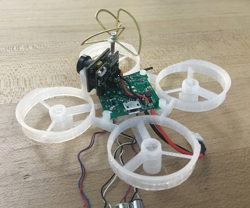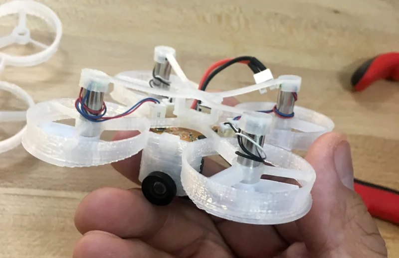I've never done much Tiny Whooping, 'cause indoor flying gives me such a headache I'm put out of commission for half a day (I think it's the low speed and constant corrections that gets to me). So when Randy Slavin asked me to take a shot at designing a stronger frame out of nylon, one with more durable motor struts, I had to take a crash course in all things Whoop. I grabbed Randy's extra Inductrix and started cramming.